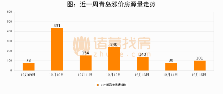 根据诸葛找房数据显示,青岛24小时涨价房源量为101套,较12月14日增加21套,环比上涨26.2%。与此同时,涨价房源占比小幅扩大,业主信心有所提升。
