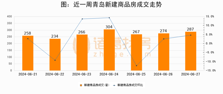 【青岛成交日报】06月27日新房成交287套、二手房235套;涨价房源42套