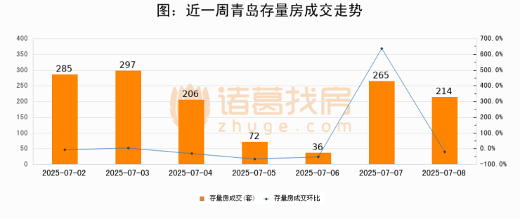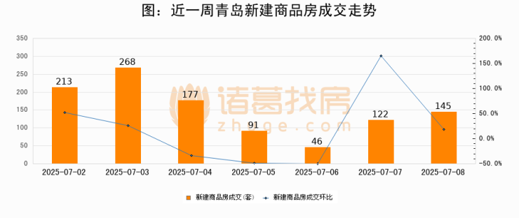 【青岛成交日报】07月08日新房成交145套、二手房214套;涨价房源1套