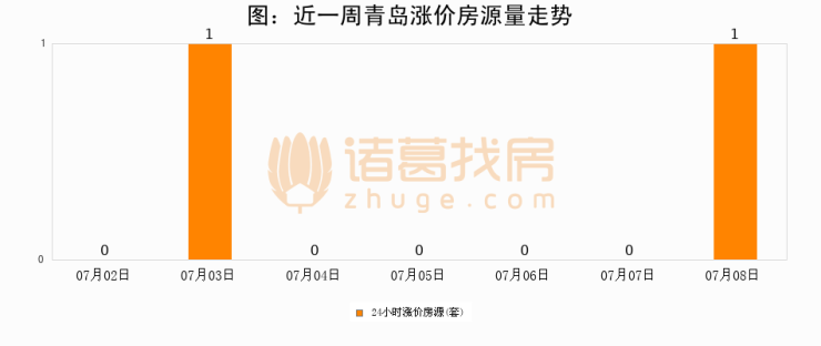 根据诸葛找房数据显示,青岛24小时涨价房源量为1套,较07月07日增加1套,环比上涨0%。与此同时,涨价房源占比小幅扩大,业主信心有所提升。