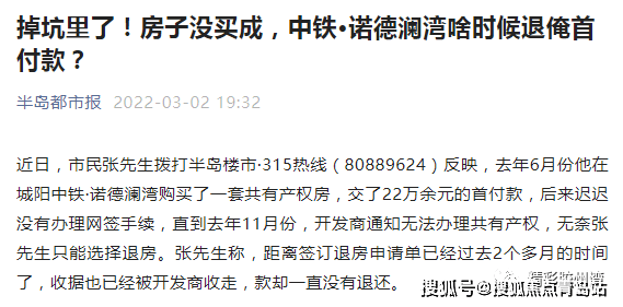 本人与2021年中旬交齐首付购买了上马街道中国中铁诺德澜湾处楼房,购买时开发商承诺可以使用共有产权,但购买半年有余中国中铁诺德澜湾项目共有产权手续一直无法正常办理,经与售楼处协商本人于2022年1月7日发起退款,首付款售楼处承诺30天工作日内退还并回收了所有购买凭证,现距发起退款手续已三个月有余,售楼处一直以各种理由拖延退款,本人与售楼处多次协商一直未解决。中国中铁诺德澜湾项目存在销售欺诈,并严重损害本人利益。目前退款遥遥无期,本人走投无路,现求助于政府领导,望领导予以协助解决,保障城阳公民合法权益。 2022-04-10
