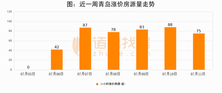 根据诸葛找房数据显示,青岛24小时涨价房源量为75套,较07月10日减少13套,环比下降14.8%。与此同时,涨价房源占比小幅回落,对于购房者来说是一个入市窗口期,购房者可抓住时机入市。