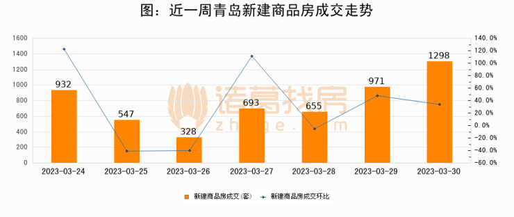 【青岛成交日报】03月30日新房成交1298套、二手房271套;涨价房源183套