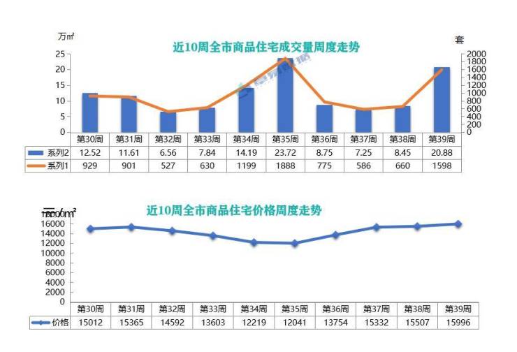 价格方面,上周青岛新建商品住宅均价为15996元/㎡,上涨489元/㎡,涨幅为3.15%。