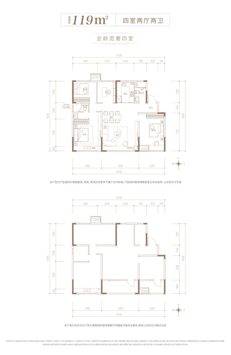 在空间的规划上,青特·君悦为居者的家庭生长属性着想,致力于打造真正的舒适人居,精研3+1创变户型,打造建筑面积约119㎡四室两厅两卫,迭代宽居,以高得房率、一梯两户、约5.0m奢阔宽厅、约8.5m南向双瞰景阳台、全能主卧套房、约3.9m观景飘窗、双明卫等奢华配置用心引领户型风潮,以阔绰空间尺度成就宽境人生。