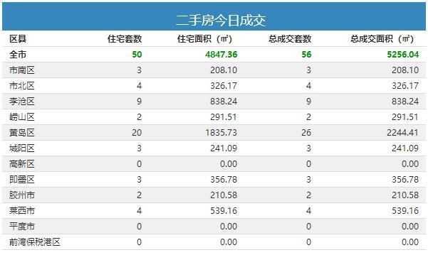 根据青岛网上房地产交易数据显示,15日,岛城一手房、二手房市场各物业类型共成交420套,其中一手房成交364套,总成交面积40883.64㎡。其中住宅成交了338套,总成交面39094.48㎡。15日岛城各区市中,黄岛区住宅成交121套,列销售榜排名前列位;胶州市住宅成交59套,列销售榜第二位;即墨区住宅成交38套,列销售榜第三位。