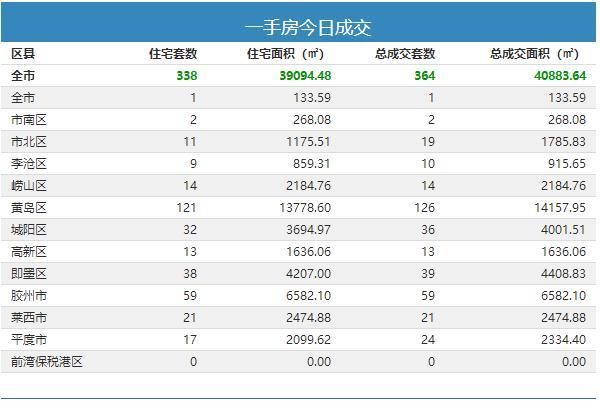 15日青岛新房成交364套 黄岛区住宅成交121套夺冠