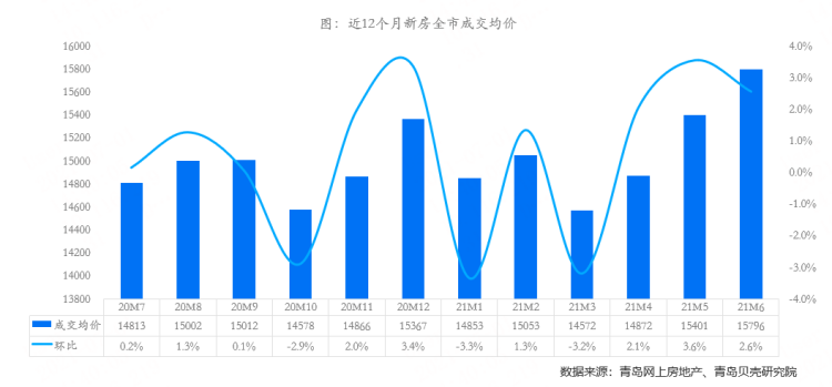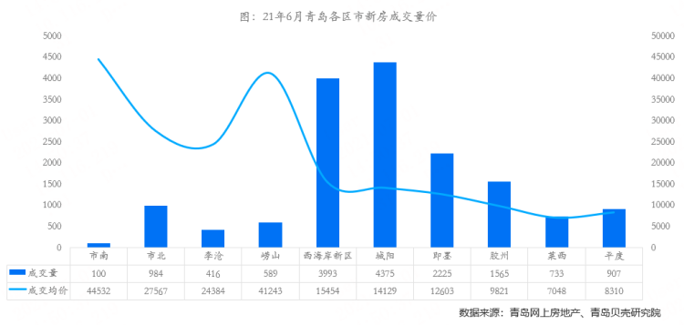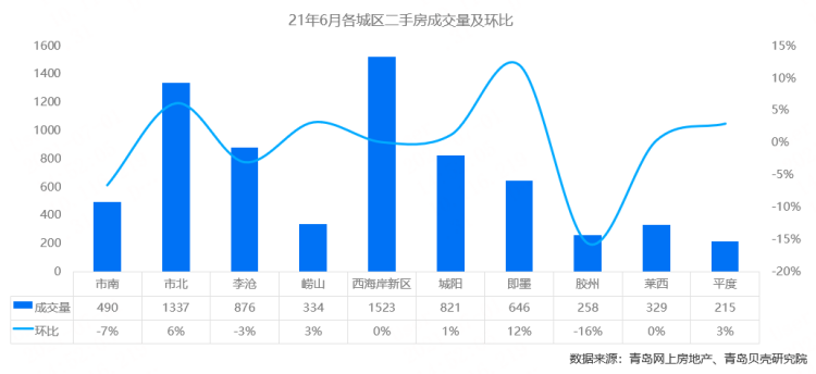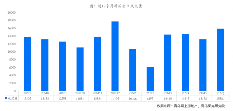 [贝壳数据] 6月青岛楼市成交量上涨14%,新房成交量占近