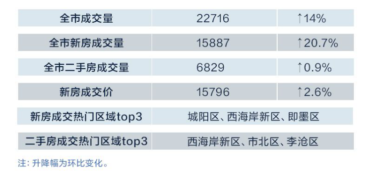 看点三:城阳、西海岸、即墨为新房成交量TOP3区域
