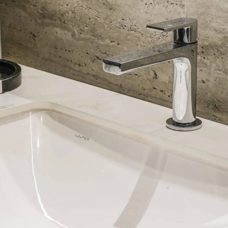 而卫浴也是极其考验装修水准和生活品质的地方。黑卓·天筑的卫浴品牌选用的是瑞士劳芬,这是卫浴界的劳斯莱斯,一直是欧洲皇室的御用品牌,被黑卓·天筑搬到了家里。