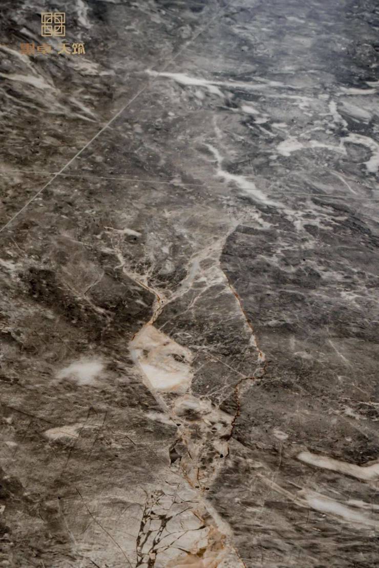 ②第二个细节是拼花。无论是莫奈灰岩的地砖,还是进口的岩板,这两种板材最特殊的地方,就在于都有其特殊而细腻的纹路,所以在施工时,对所有板材的切割和铺装都要求编号和对缝,最终的误差必须保证在0.03毫米以内,才让整个室内空间呈现浑然一体的视觉美感。