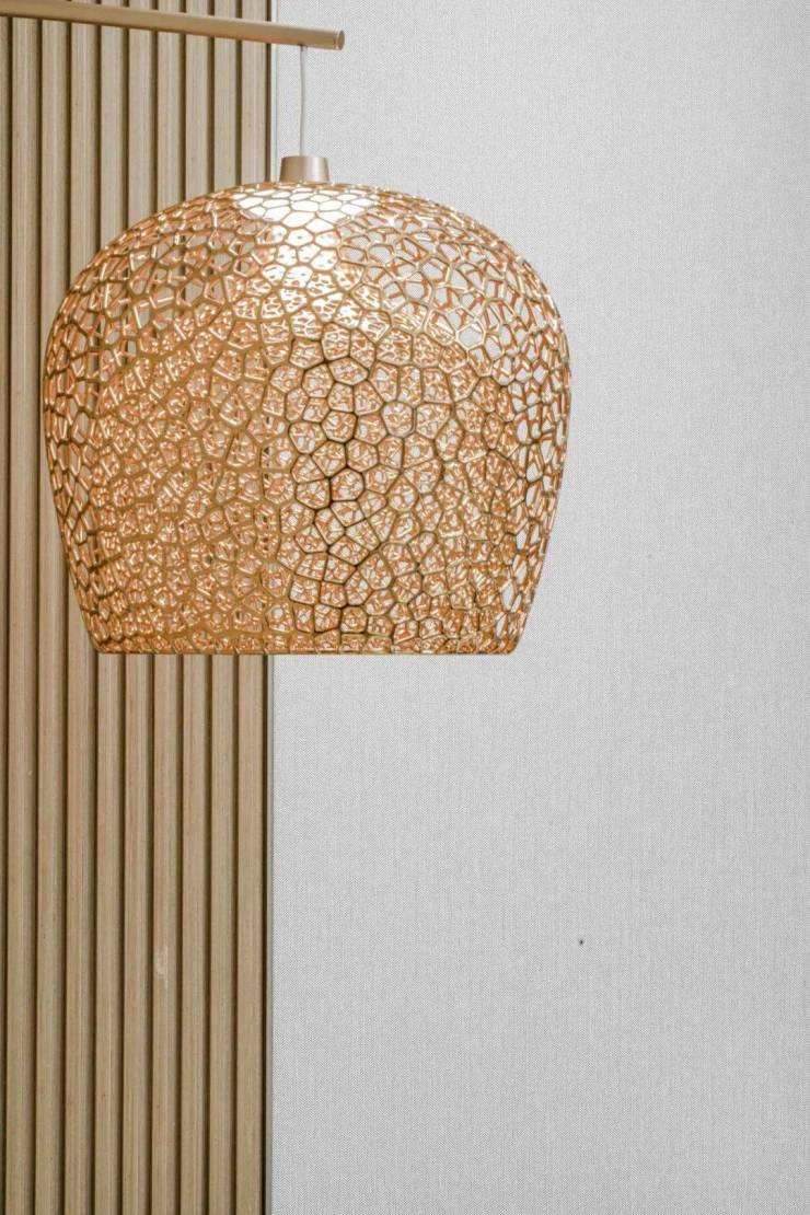 ①第一个细节就是天花板,往往也是最容易被忽略的地方。黑卓·天筑对天花板的处理,真的是天花板的级别。在材质上不是简单的刮几遍腻子就行,而是通过壁布、皮革、金属等不同材质的搭配,营造出独具艺术感的吊顶设计,且每一条棱边都进行金属包边的处理,使得整个空间的天穹,有了更丰富的质感层级。
