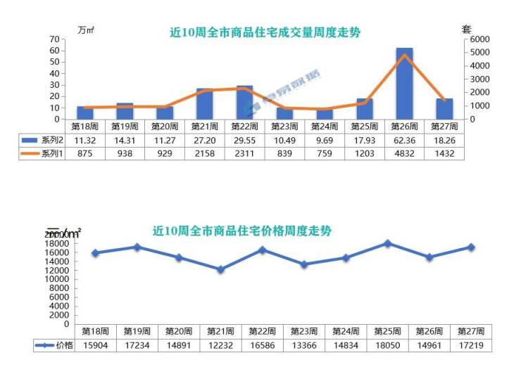 根据卓易数据统计,上周(6.30-7.6)青岛新建商品住宅成交1432套,成交面积为18.26万㎡。