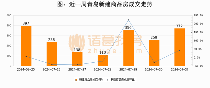 【青岛成交日报】07月31日新房成交372套、二手房228套;涨价房源47套