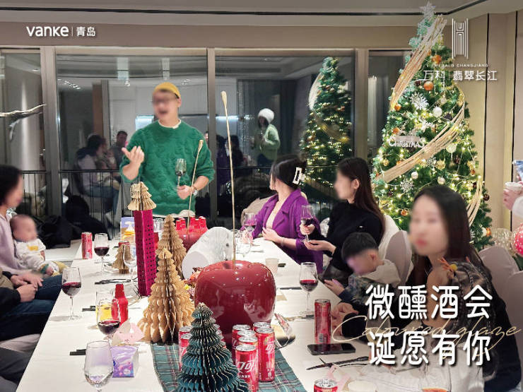 为了迎接新邻里的到来,万科·翡翠长江在星空酒廊组织了一场圣诞酒会,邻里家人们欢聚于此,在约270°星空环幕中俯瞰整座城市;美味的火鸡宴象征着丰盛与感恩,收获了邻里们的盛赞,极具仪式感的亮灯仪式,将酒会推向高潮。