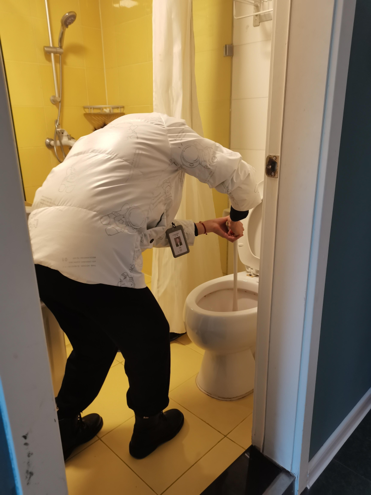 租客是位小姑娘,打开房门说,“真不好意思,耽误你下班了。”,运营官:“没事,多亏我没走,我帮你试试能不能处理,如果处理不好就只能明天找专业师傅了。”运营官先是查看了马桶堵塞情况,尝试用大盆水对冲发现堵塞情况比较严重,运营官果断挽起袖子用马桶踹子一点一点疏通,忙活了二十多分钟,终于为租客解决了问题。临走前,又嘱咐了租客几个马桶疏通的小技巧,租客特别感激,特意送给运营官一瓶饮料表示感谢。