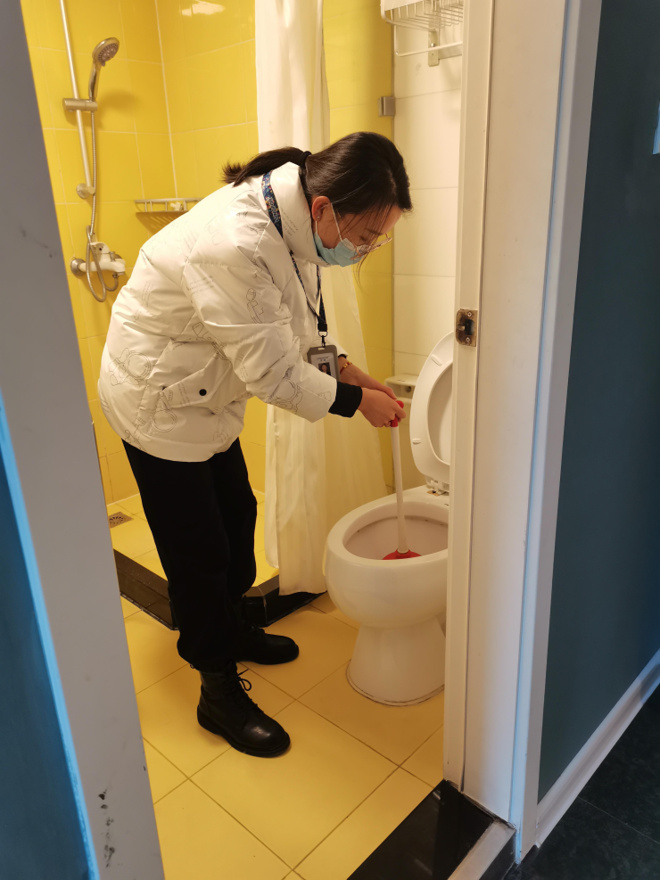 11月18日晚上9点多,龙湖冠寓井冈山路的运营官正在梳理第二天工作日志,接到了406租客的微信求助电话,“您好,龙湖冠寓井冈山路店,请问有什么可以帮您的?”电话对面的租客很不好意思的表示“我房间马桶堵住了,我自己弄了好久还是没弄好,可以来帮我看一下吗?”运营官了解情况后,立马安抚租客:“好,您先别着急,我马上过去帮你。”挂断电话,运营官去保洁间拿起工具就前往租客房间。