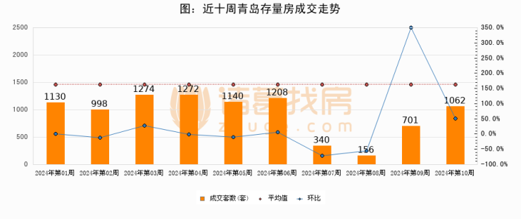 存量房方面,第09周青岛存量房成交1062套,较上周增加361套,环比上涨51.5%。从近十周成交走势来看,周均成交套数为928套,本周高于平均水平14.4%。