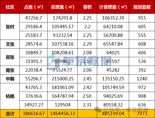 1月16日,南张、郑张、张村、文张、中韩、枯桃社区村庄改造安置区建设项目规划方案批前公示,6大社区安置房总占地38.66万㎡,总建面146.45万㎡,计容建面88.52万㎡,总套数7973套。