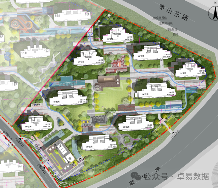 位于崂山区枣山路以南,株洲路以东,新南路以北,项目总用地面积约10.20万平方米。规划总建筑面积约37.34万平方米,其中地上建筑面积约22.73万平方米,地下建筑面积约14.61万平方米,规划30栋(15-18F)住宅楼,规划户数2075套,2栋配套楼,3处地下联通通道。