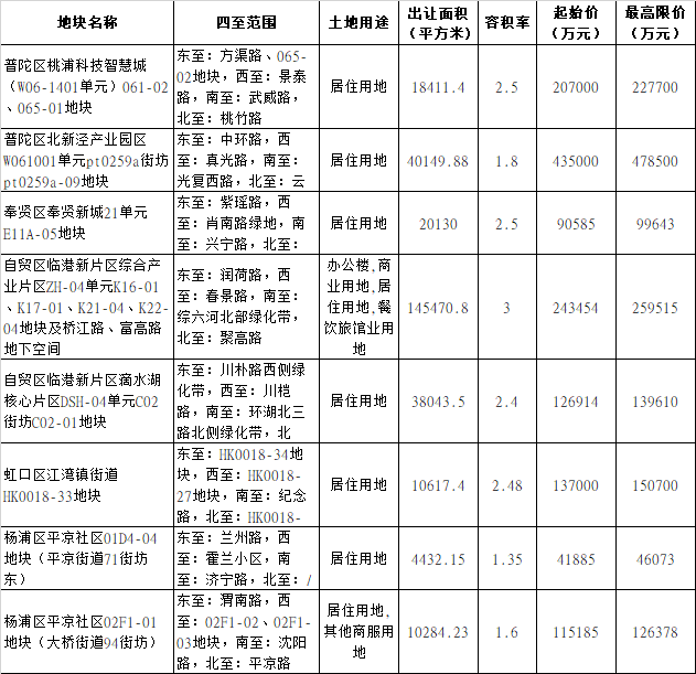 上海第四批集中供地:首轮8宗地块起始总价139.7亿元