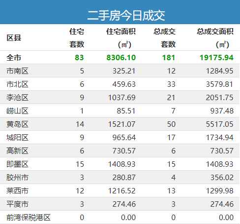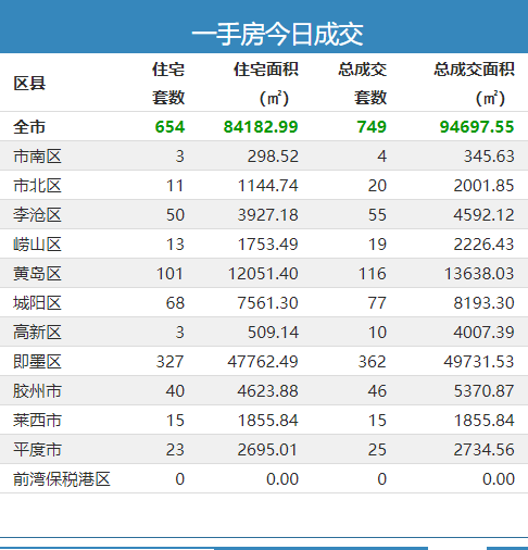 24日青岛新房成交749套 即墨区住宅成交327套夺冠