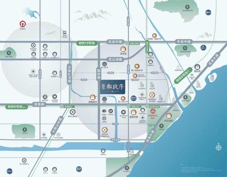 项目周边一路之隔实验二小,近邻西海岸中六中,真正从小学到初中的超一流双名校;约1公里维客超市、德泰利群、幸孚 mall、欢乐海湾、在建商业综合体五大商圈,先进名仕商业圈,约1公里区立医院、人民医院、清华大学北方医疗中心(在建),护航健康;13号线双珠路站、6号线孙家滩站(在建),23号世纪新村站(规划),三大地铁枢纽、双珠路主干道,便捷畅行全城。