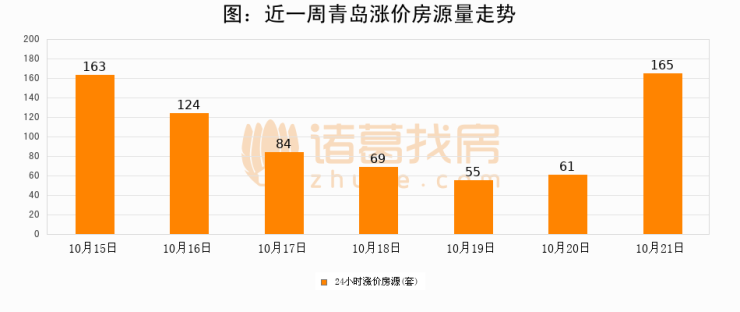 根据诸葛找房数据显示,青岛24小时涨价房源量为165套,较10月20日增加104套,环比上涨170.5%。与此同时,涨价房源占比小幅扩大,业主信心有所提升。