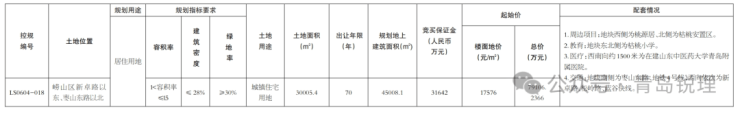 LS0604-018地块位于枣山东路以北、枯桃三号路以东,住宅用地,占地面积约3万㎡,容积率1.5,建筑面积约4.5万㎡,建筑密度28%,绿地率30%。竞买保证金3.16亿元,比例为40%。地块容积率上调至1.5后,起拍楼面地价较去年下调2989元/㎡,降至17576元/㎡。起拍总价增至7.91亿元!
