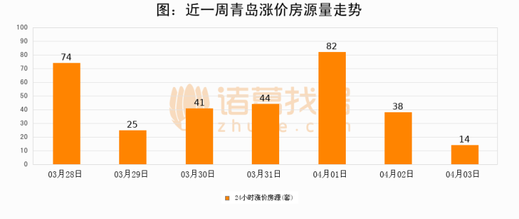 根据诸葛找房数据显示,青岛24小时涨价房源量为14套,较04月02日减少24套,环比下降63.2%。与此同时,涨价房源占比小幅回落,对于购房者来说是一个入市窗口期,购房者可抓住时机入市。