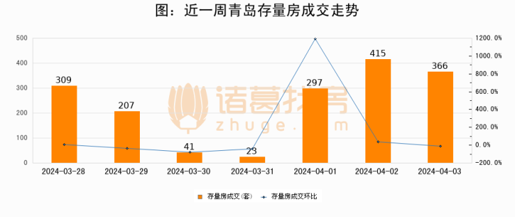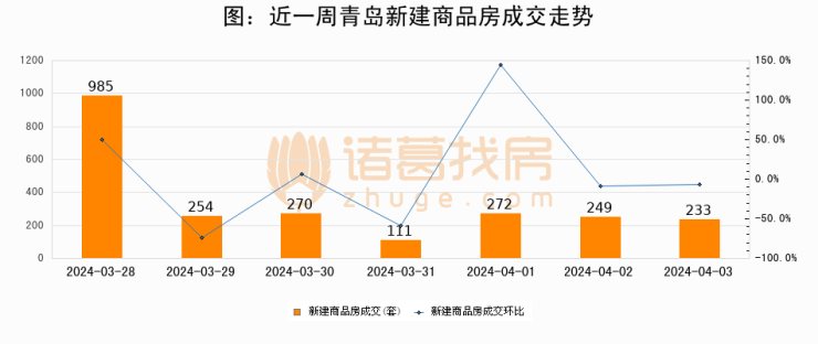 【青岛成交日报】04月03日新房成交233套、二手房366套;涨价房源14套