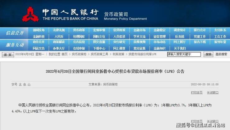 焦点财经讯6月20日,中国人民银行公布,2022年6月20日贷款市场报价利率(LPR)为:1年期LPR为3.70%,5年期以上LPR为4.45%,均与上月持平。…