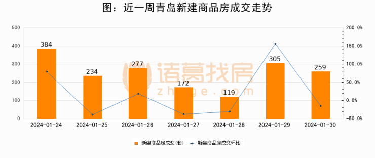 【青岛成交日报】01月30日新房成交259套、二手房222套;涨价房源26套