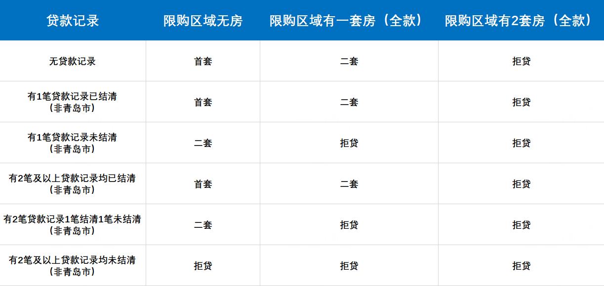 注3:青岛非限购区域有一套全款购买的商品房,那么他在青岛贷款买房则算二贷。