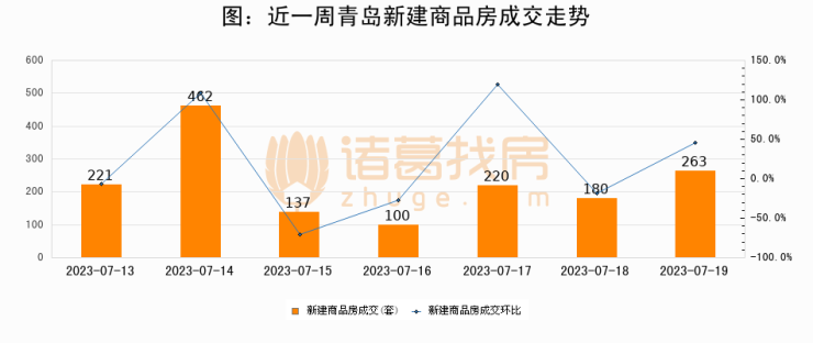 【青岛成交日报】07月19日新房成交263套、二手房213套;涨价房源33套