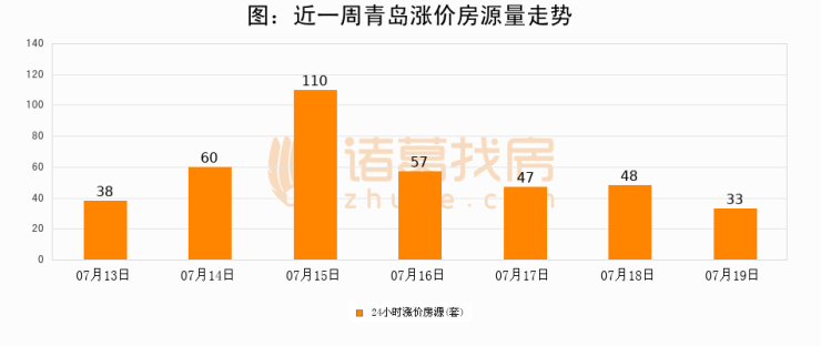 根据诸葛找房数据显示,青岛24小时涨价房源量为33套,较07月18日减少15套,环比下降31.2%。与此同时,涨价房源占比小幅回落,对于购房者来说是一个入市窗口期,购房者可抓住时机入市。