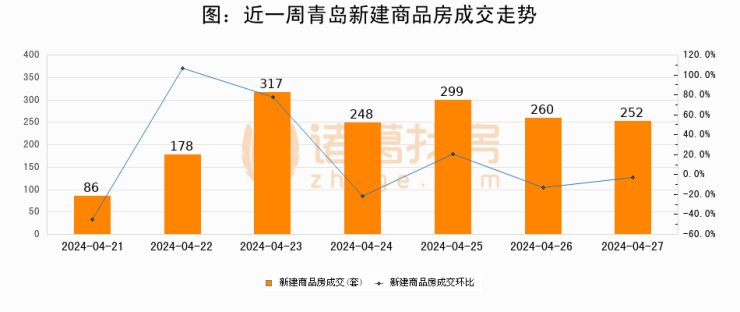 【青岛成交日报】04月27日新房成交252套、二手房72套;涨价房源32套
