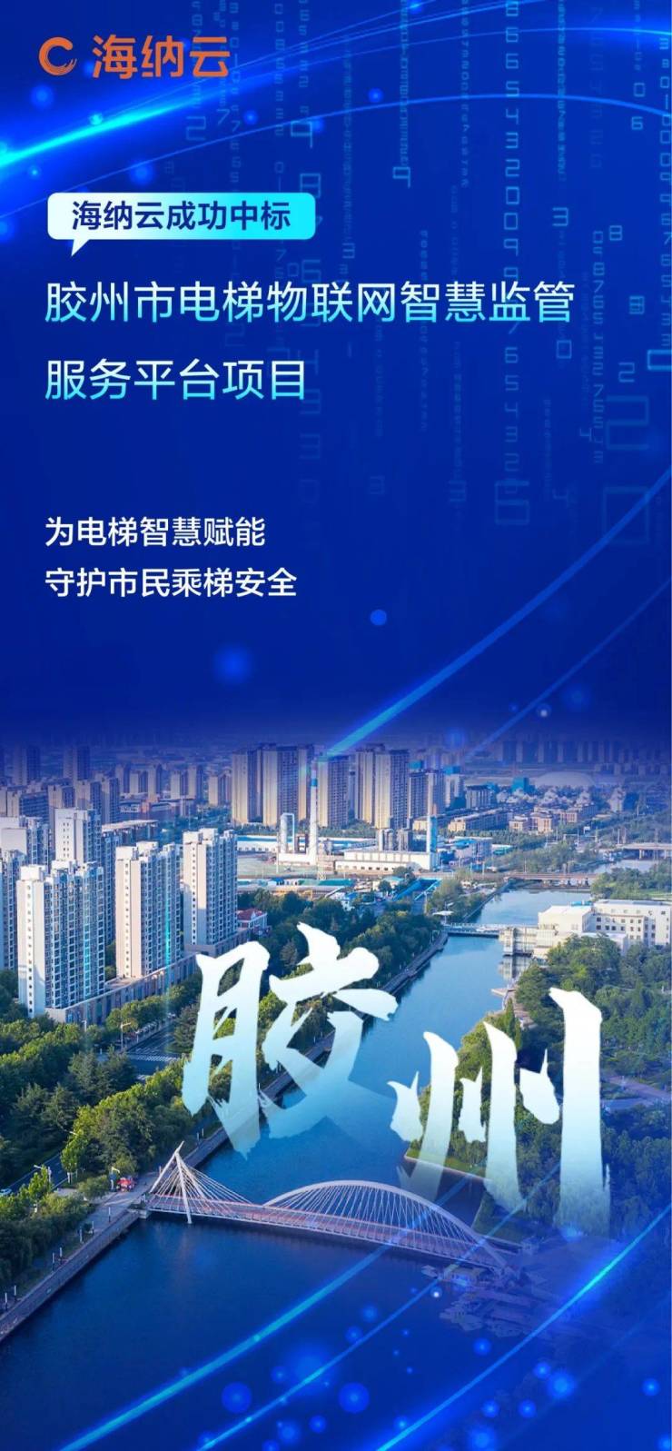 海纳云成功中标“胶州市电梯物联网智慧监管服务平台项目”。