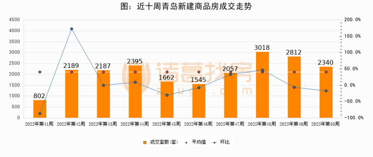 【青岛成交周报】第50周新房成交2340套,二手房1034套,涨价房源1127套