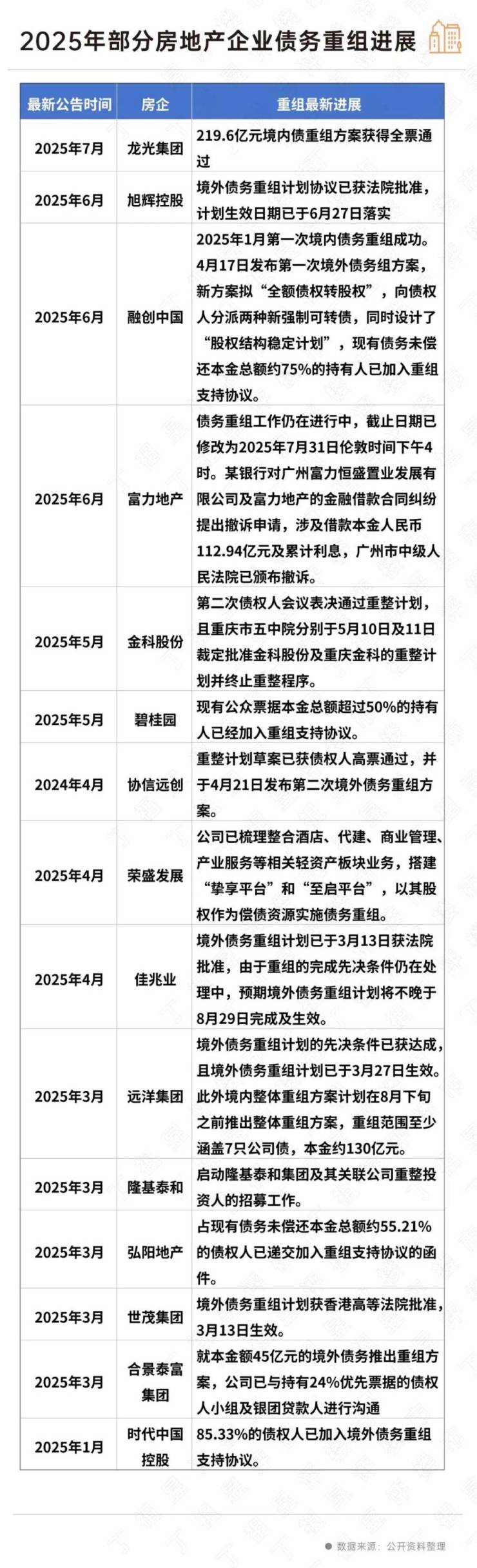 进入7月,龙光集团境内债券重组宣告成功,21笔涉及219.6亿元境内债重组方案获得全票通过。