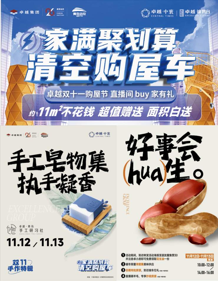正值钜惠双十一,先进·中寰推出实在六重礼,惊喜福利助力安家!总裁专属特价房较高直省29万,到访即抽车位礼,一步到位实现住房自由;经纪人专属福利,赚积分有机会抽取金条、大牌家电;直播间专属优惠,抄底房源全民爆抢,重磅壕礼实力宠粉;参与卓小房互动游戏,瓜分万元购屋车奖金;到访转发集赞即可领取花生油一份,更有烤蜜薯美味供应,让这个初冬,彻底燃起来!