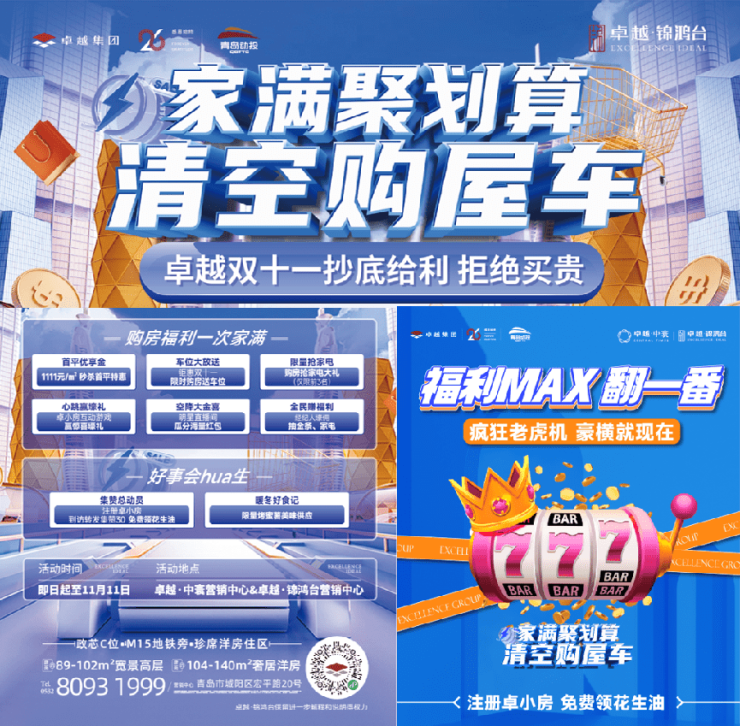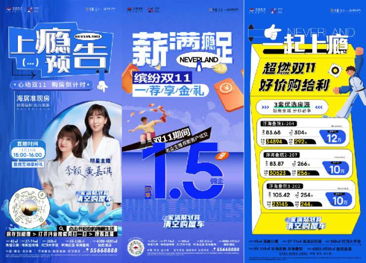 先进·天元、先进·屿海双盘齐发,浓情壕礼盛惠双十一。直播间专属优惠,拒绝套路拒绝想象,抄底房源全民爆抢;总裁专属特价房较高优惠12万,福利来袭,敬献岛城;参与卓小房互动游戏,瓜分万元购屋车奖金;老业主成交可享1.5倍佣金,购房福利狂撒,力度令人咋舌!