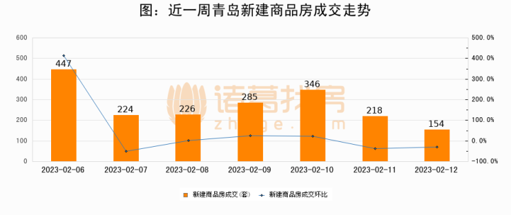 【青岛成交日报】02月12日新房成交154套、二手房27套;涨价房源223套
