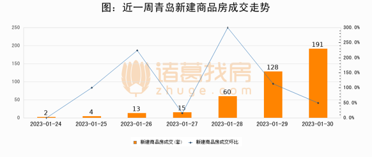 【青岛成交日报】01月30日新房成交191套、二手房146套;涨价房源224套