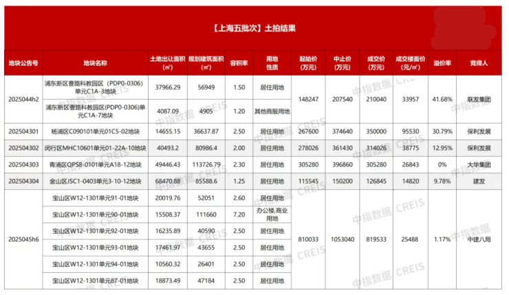 6月19日—20日,上海今年第五批次土拍成功出让6宗地,有5宗地溢价成交,成交总金额达212.57亿元。