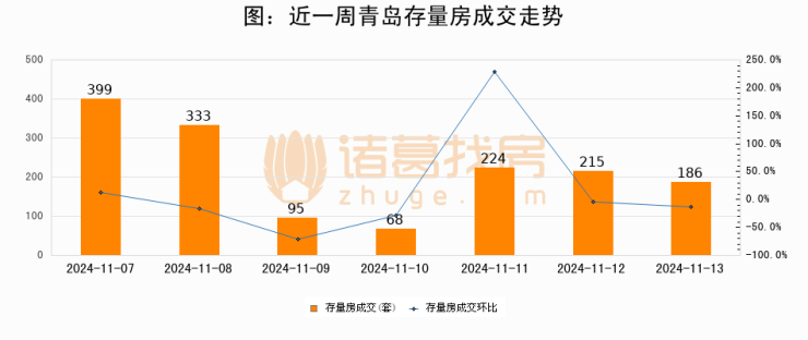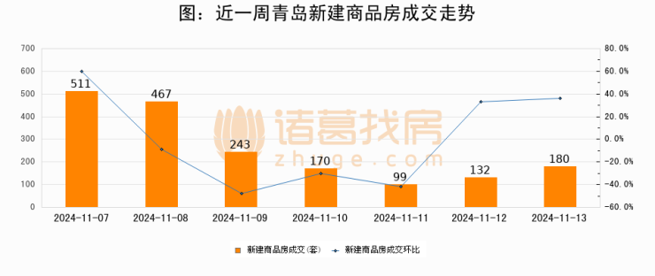 【青岛成交日报】11月13日新房成交180套、二手房186套;涨价房源30套