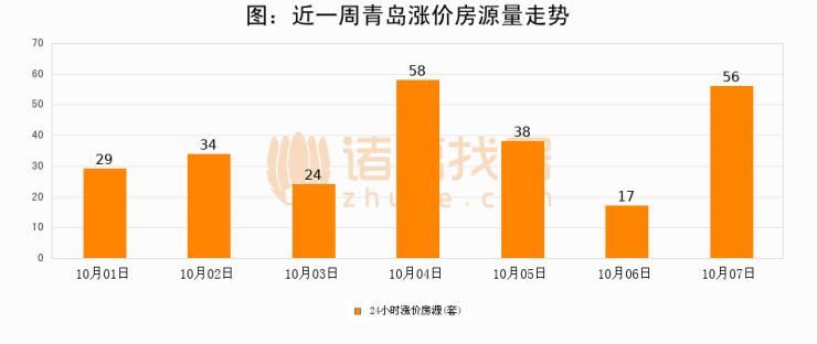 根据诸葛找房数据显示,青岛24小时涨价房源量为56套,较10月06日增加39套,环比上涨229.4%。与此同时,涨价房源占比小幅扩大,业主信心有所提升。