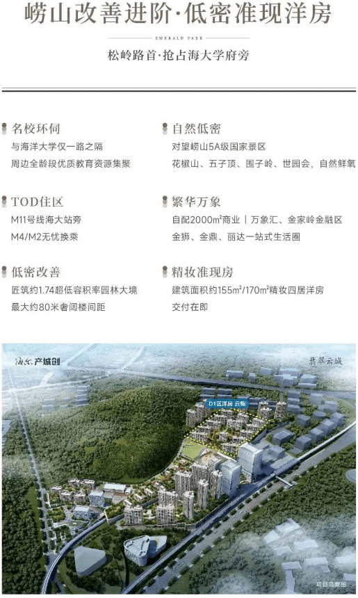 本宣传资料所涉宣传内容,仅作为项目宣传推广使用,不在任何意义上构成开发商的承诺与邀约,具体以政府部门审定的规划设计文件及商品房买卖合同的约定为准。本资料为2023年3月的内容,本公司有权对宣传内容进行调整、修改,敬请留意最新宣传资料。本项目推广名为:翡翠云城;地名办核准名为:翡翠天城;开发公司为:青岛海唐置业有限公司。商品房预售证:青房注字(崂2020)第012号。商品房预售证:青房注字(崂2020)第017号。