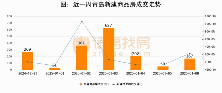 【青岛成交日报】01月06日新房成交167套、二手房243套;涨价房源36套