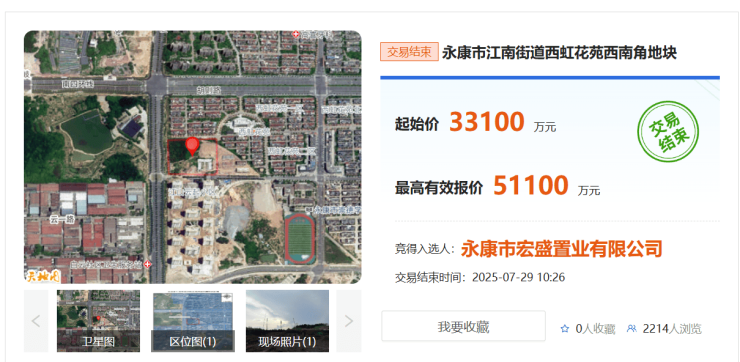 浙江永康一宗宅地溢价54.38%成交,房企积极寻找三四线城市机会